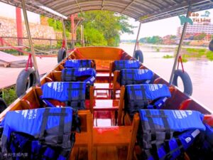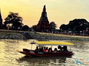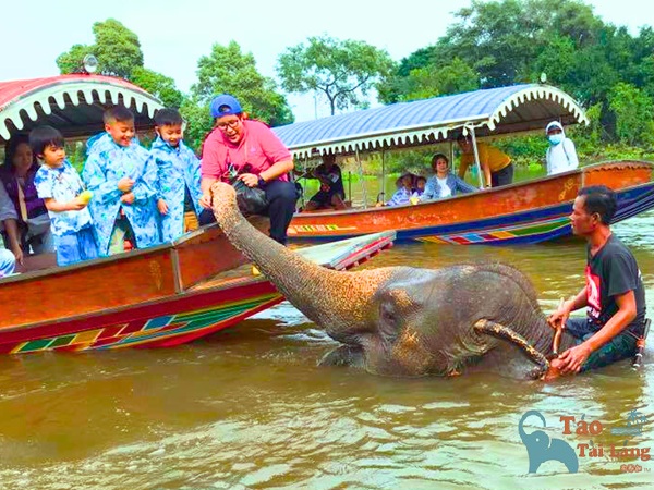 行程中會搭船順著昭披耶河欣賞兩岸風光,經過大城著名古蹟寺廟及特定景點。然後抵達定點與大象相會,可以看到大象下水過來靠近船邊。