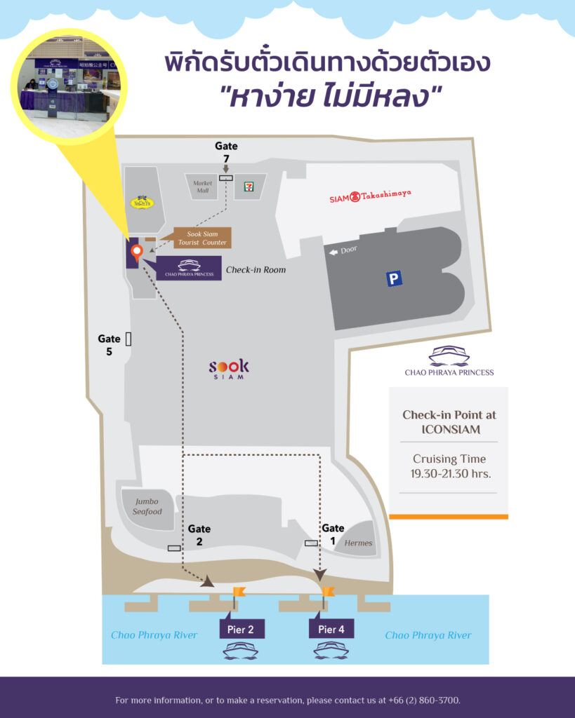 ▼ Iconsiam建議於18:30前於櫃檯換票劃位, 換票地點如圖: