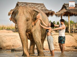 14.00 PM 與大象見面。給它們餵食,並在自然環境中與大象玩耍、互動並拍照