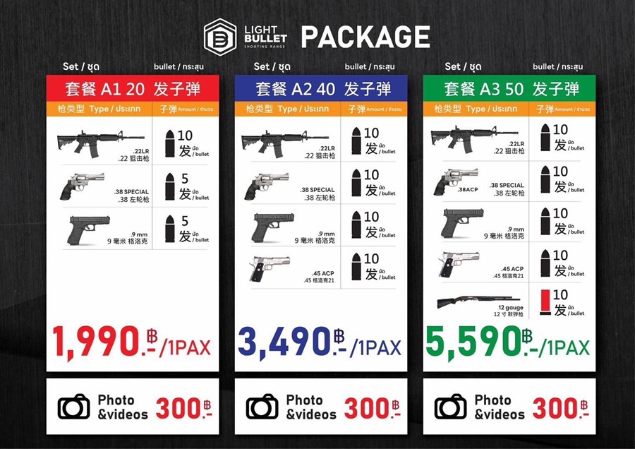 *A1 單人套餐 : .22LR (10發) / 9mm (5 發) / .38 Special (5 發), 共 20 發子彈