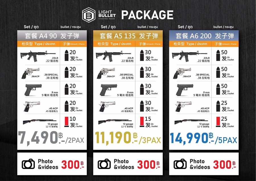 | Light Bullet | A1 單人套餐, A2 單人套餐, A3 單人套餐, A4 雙人套餐, A5 三人套餐, A6 五人套餐 |