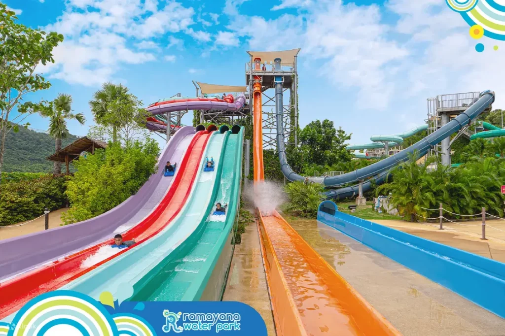 來到芭達雅,除了有適合親子同樂卡通頻道水上樂園 Cartoon Network Amazone,還有喜歡玩刺激設施人士最愛的羅摩衍那水上樂園。園區位於距離芭達雅市區20公里處,四周青山綠水環繞,在遊玩園內設施的同時還能感受四周迷人的風光。園區內設施有21座讓您尖叫不止的驚險項目,也有2區專門提供給孩童遊玩的兒童遊樂區。還有攀越障礙挑戰的運動池,水中酒吧,水上市場以及更多有趣的項目,且都是由全球第一的水上樂園設備製造商加拿大白水西部產業公司根據國際安全檢驗標準製造,讓您可以安心無慮的瘋玩一整天。